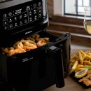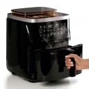 Esta Fritadeira Air Fryer com funções de vapor + grill possui 10 programas de cozimento predefinidos que permitem fritar, grelhar, usar as funções tradicionais de forno, desidratar, assar pizzas e sobremesas, reaquecer, fermentar e cozinhar a vapor. Você pode preparar grandes quantidades graças à capacidade de 7 litros e à temperatura ajustável até 200 °C.